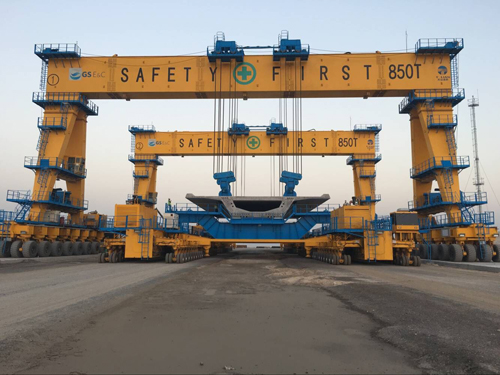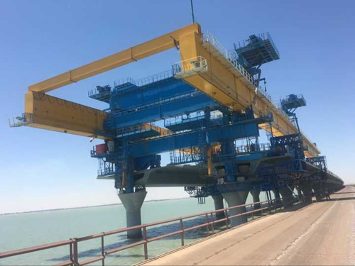 由我司為GS提供的一臺1700t架橋機,2臺850t提梁機,4臺425t運梁車(chē)以及門(mén)吊等設備,在多哈大橋的施工建設中發(fā)揮了關(guān)鍵性的作用,業(yè)主單位科威特公共交通事業(yè)部、施工單位GS建設 以及監理單位對我司設備和現場(chǎng)服務(wù)均表示高度認可。