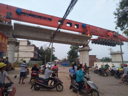 2.2017年8月15日7點(diǎn)28分,通聯(lián)科技900噸無(wú)導梁運架一體機成功完成昌贛鐵路贛江特大橋第6孔箱梁跨道路架梁工作。
